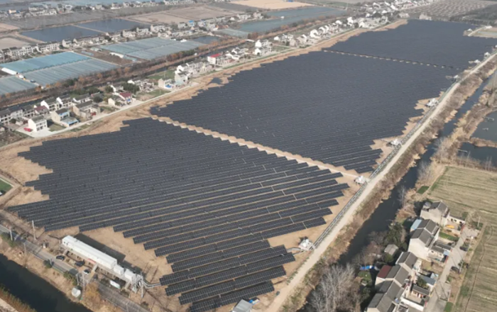 A bird's-view of the fishery-photovoltaic complementary power generation project in Shengci town, Jingjiang. [Photo/WeChat account: jingjiangfabu]